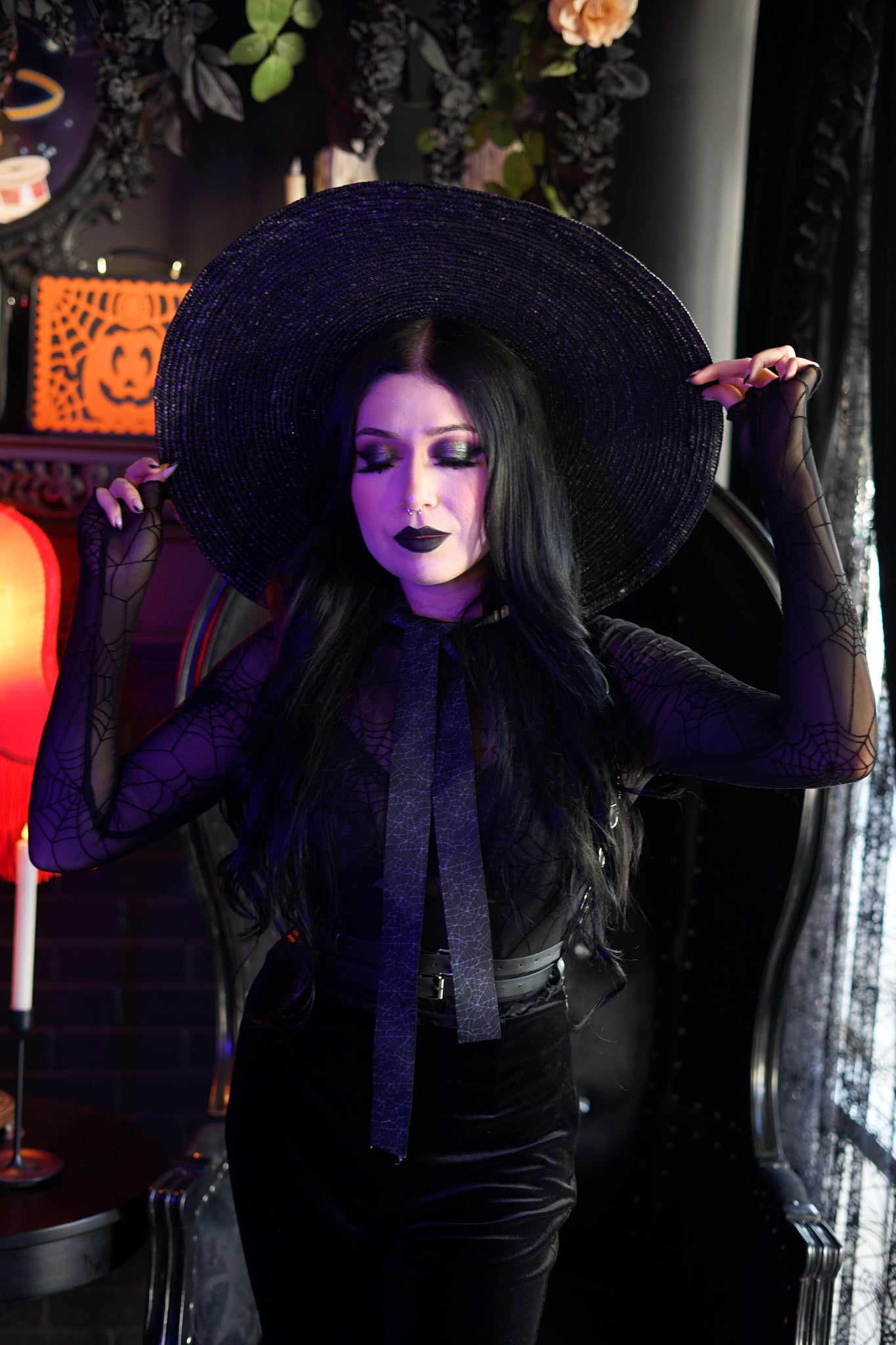 Comes with two ribbons; black velvet & spiderweb